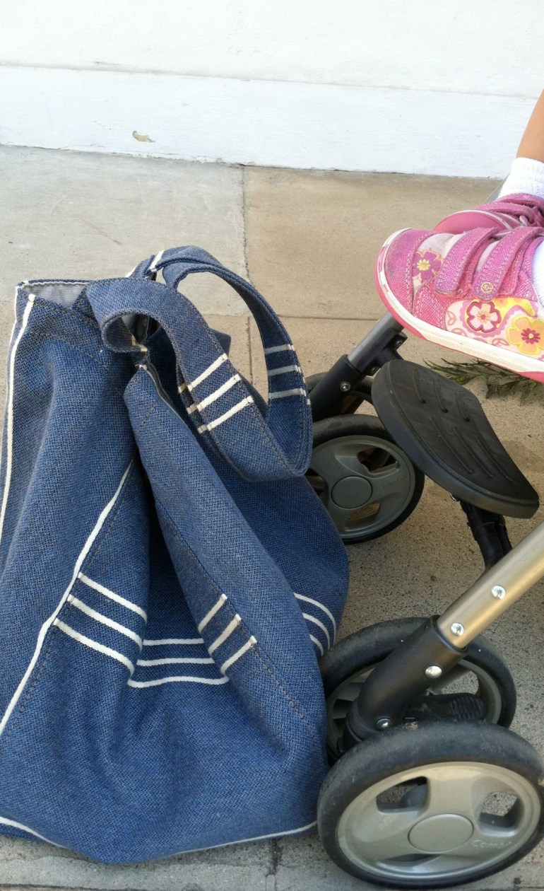 A mother’s favorite “traveling companion” the Joe Ruggiero, Caravan/Denim, Sunbrella bag. “It holds all I need, two diapers, a bottle, handiwipes, some baby food and lot’s of other things baby needs and momma needs,” says my daughter.