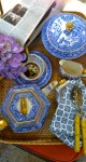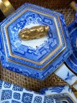 During the long weekend we enjoy breakfast on the terrace. Here a collection of antique blue willow. Serve on trays for easy “clean-up.” The seat cover is Sunbrella Trax/Persimmon from The Joe Ruggiero Collection.